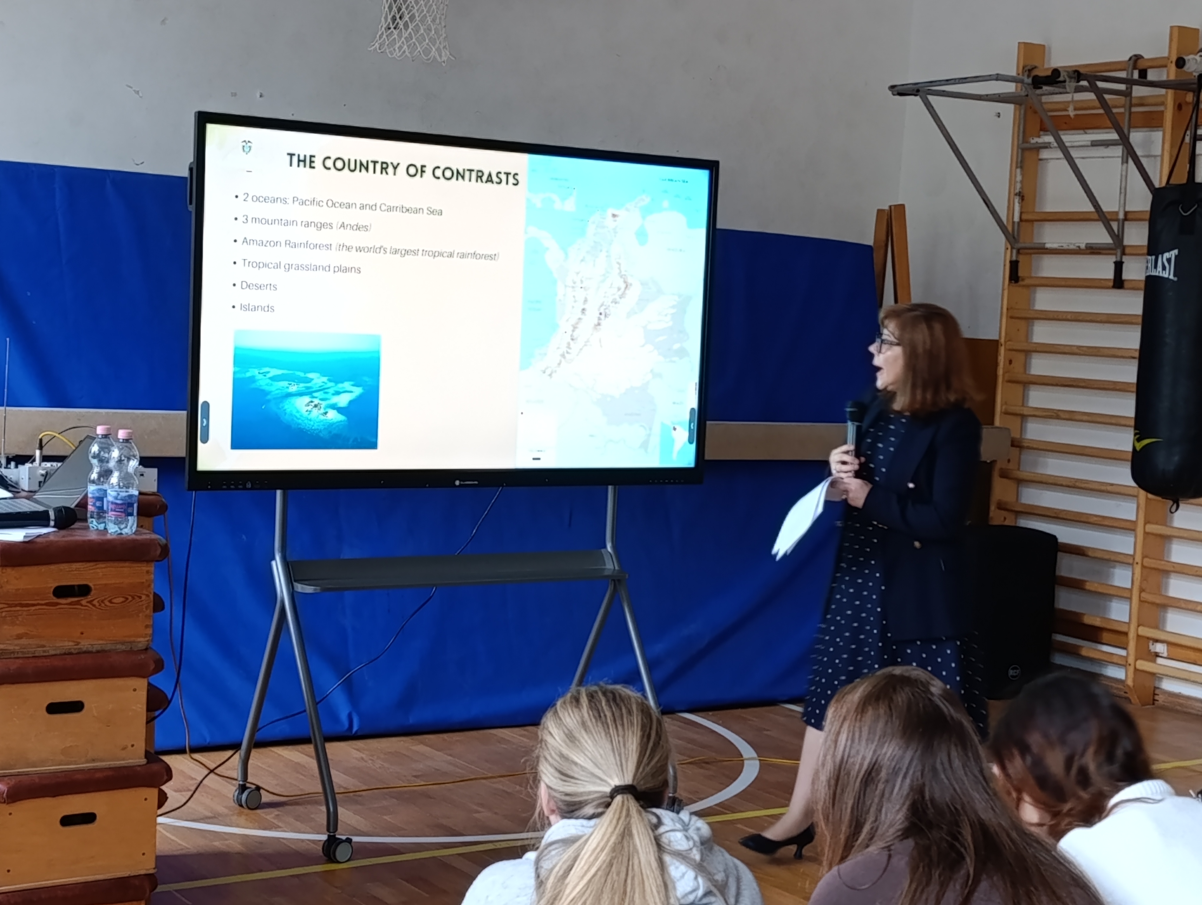 Interaktív, élményekkel tarkított előadást hallgattunk meg angolul Kolumbiáról: földrajzi helyzetéről, fővárosáról, az esőerdők világáról, biodiverzitás megőrzésére tett törekvésekről, folyók állagának és sokszínűségének megóvásáról.