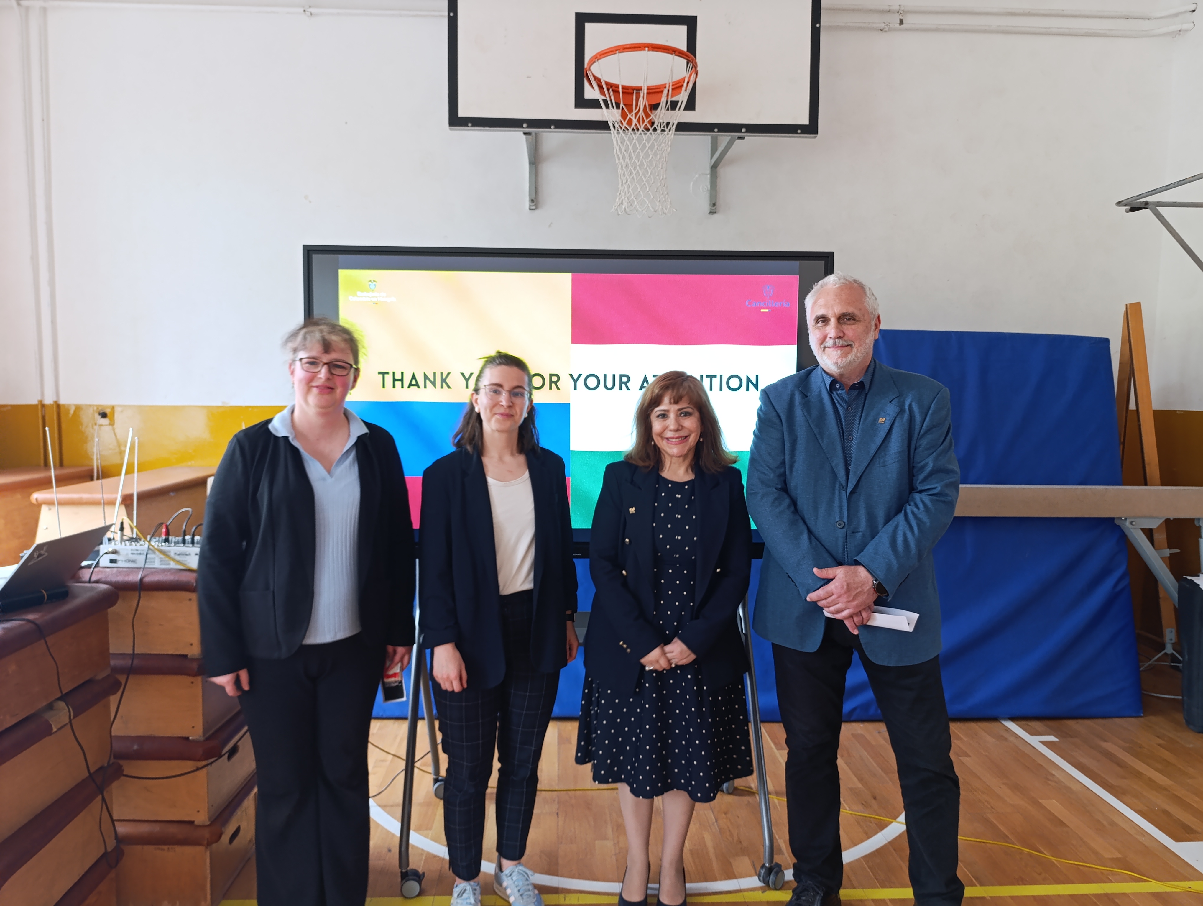 A Fenntarthatósági témahét keretén belül érkezett hozzánk kedden vendégelőadó a Kolumbiai Nagykövetségtől: Sandra Lucia Mikan Venegas miniszteri megbízott és tolmácsa Palik Zsófia.