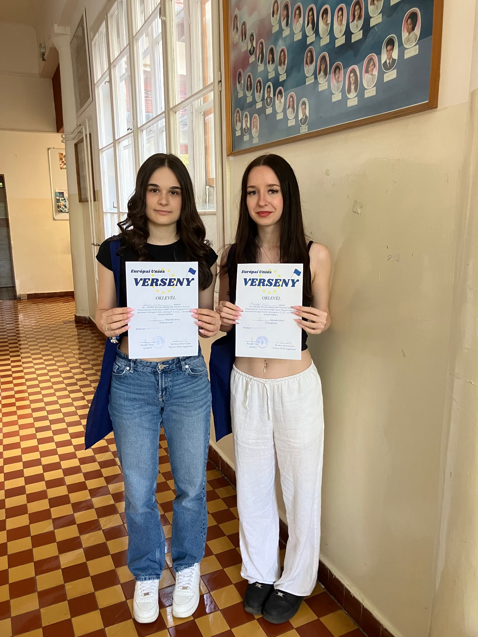 Kajzinger Lili és Varju Luca 10. c osztályos tanulóink a BGSZC Károlyi Mihály Két Tanítási Nyelvű Közgazdasági Technikum EPAS Junior Nagykövetei által szervezett Európai Uniós versenyen a 9-10. évfolyam kategóriában l. helyezést értek el! Gratulálunk a teljesítményükhöz, nagyon büszkék vagyunk rájuk!