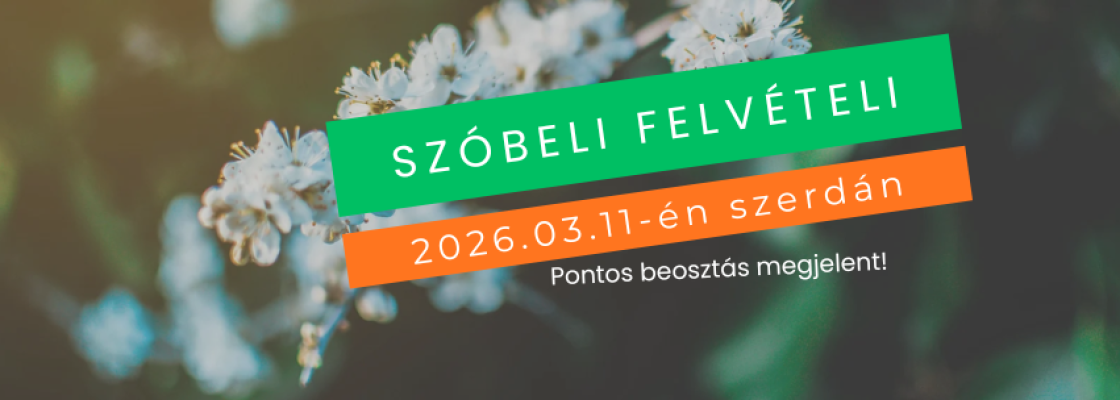Szóbeli felvételi napja: 2026.03.11. szerda.