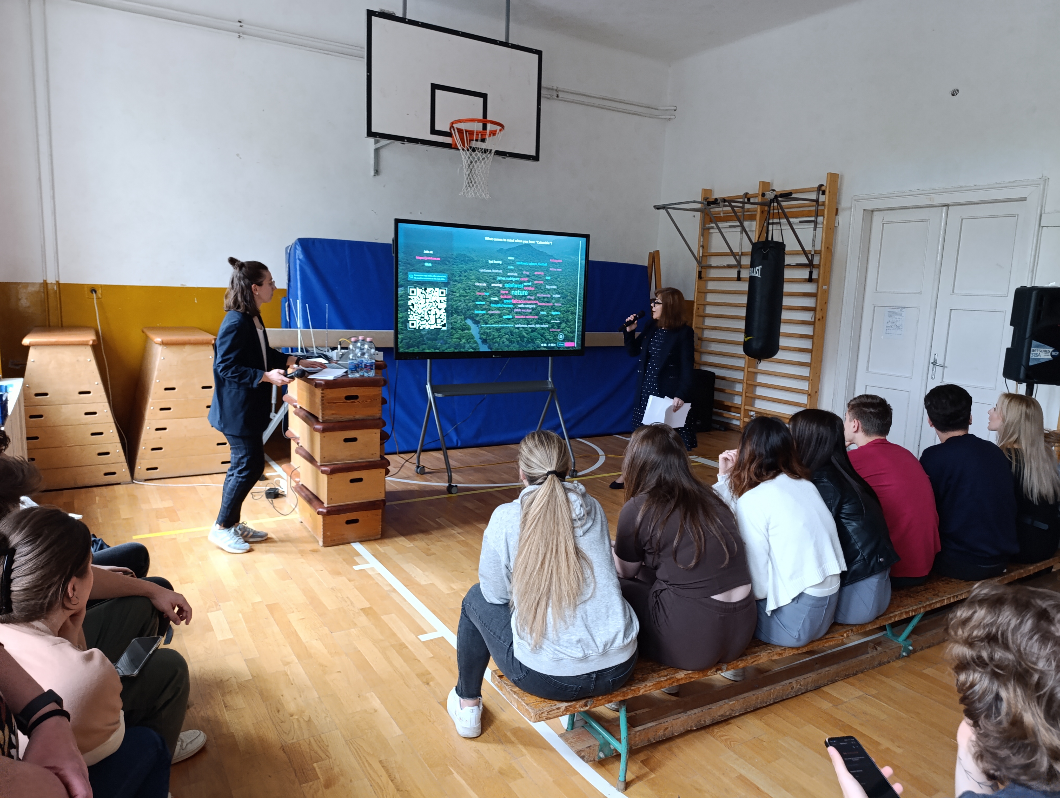 Interaktív, élményekkel tarkított előadást hallgattunk meg angolul Kolumbiáról: földrajzi helyzetéről, fővárosáról, az esőerdők világáról, biodiverzitás megőrzésére tett törekvésekről, folyók állagának és sokszínűségének megóvásáról.