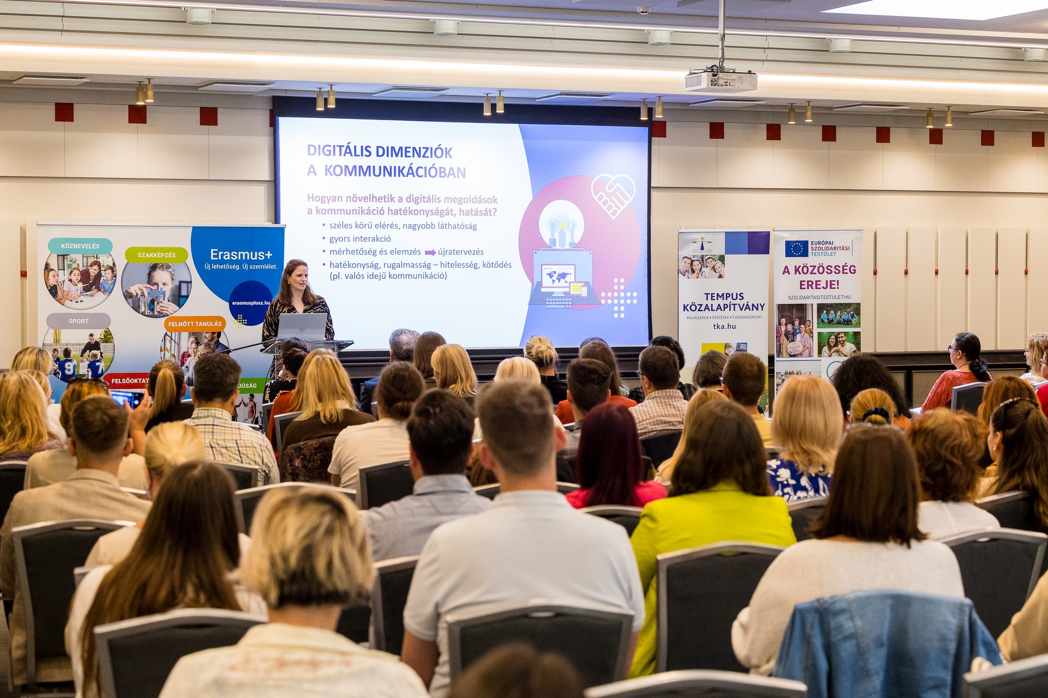 Szeptember 24-én közel 160-an gyűltek össze a Tempus Közalapítvány kommunikációs tréningjén hogy együtt tanuljanak és inspirálódjanak. Plenáris előadásoktól kezdve a workshopokig (MI, kreatív szövegírás, vizuális kommunikáció), számos értékes gondolat hangzott el, valamint kommunikációs tippek és trükkök, digitális sikertörténetek kerültek bemutatásra.